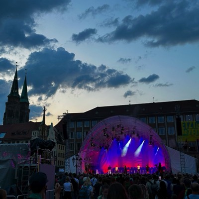 Am Abend dann, zum Abschluss des Tages, ein Konzert auf "der Hauptbühne", dem großen Markt von Nürnberg. Es tritt eine capella Band auf die wirklich beeindruckend ist. Ich versuche erst mal angestrengt das Schlagzeug zu finden - nix zu machen, das ist alles acapella, die Abendstimmung tut ein Übriges dazu. Toll.